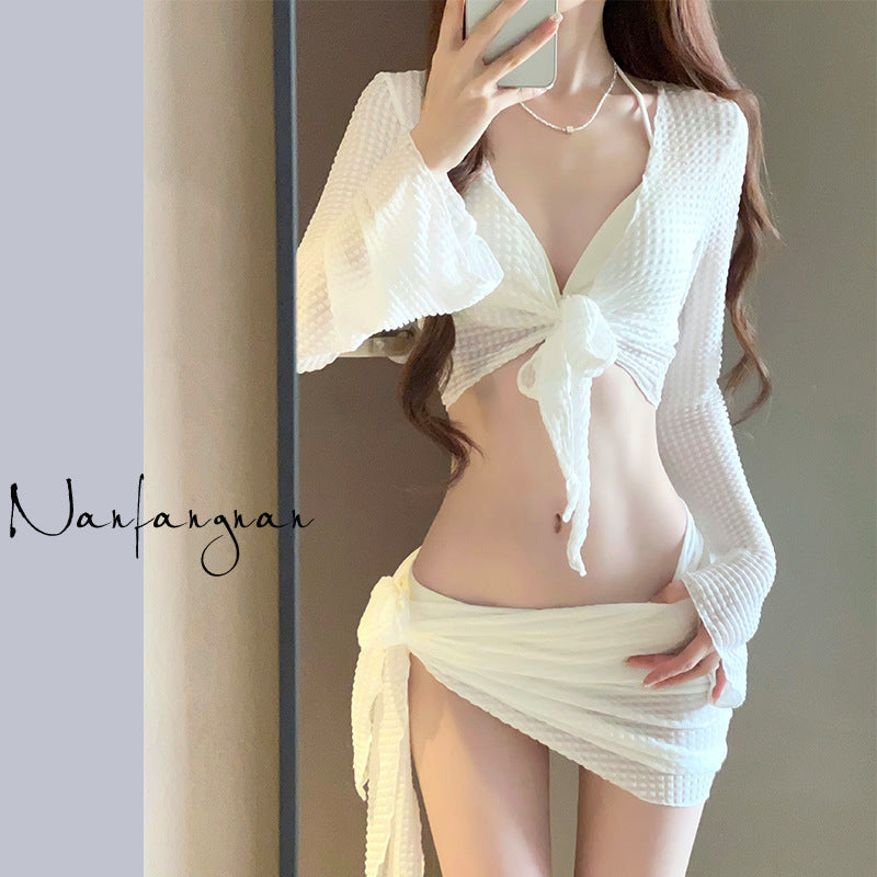 [商品名]:A ビキニ 水着 スカートセット セパレート シースルー トップスセット 体形カバー