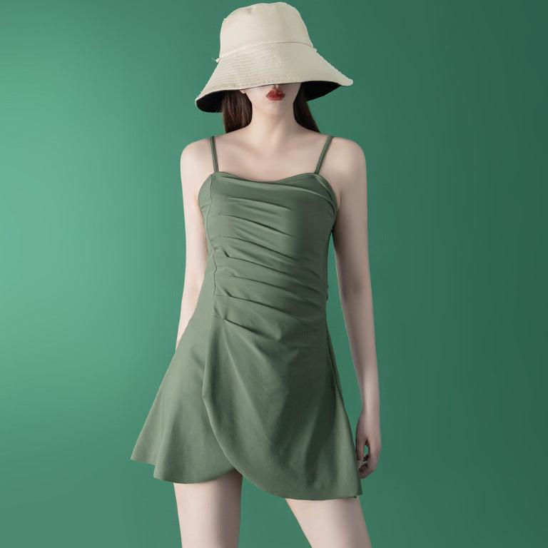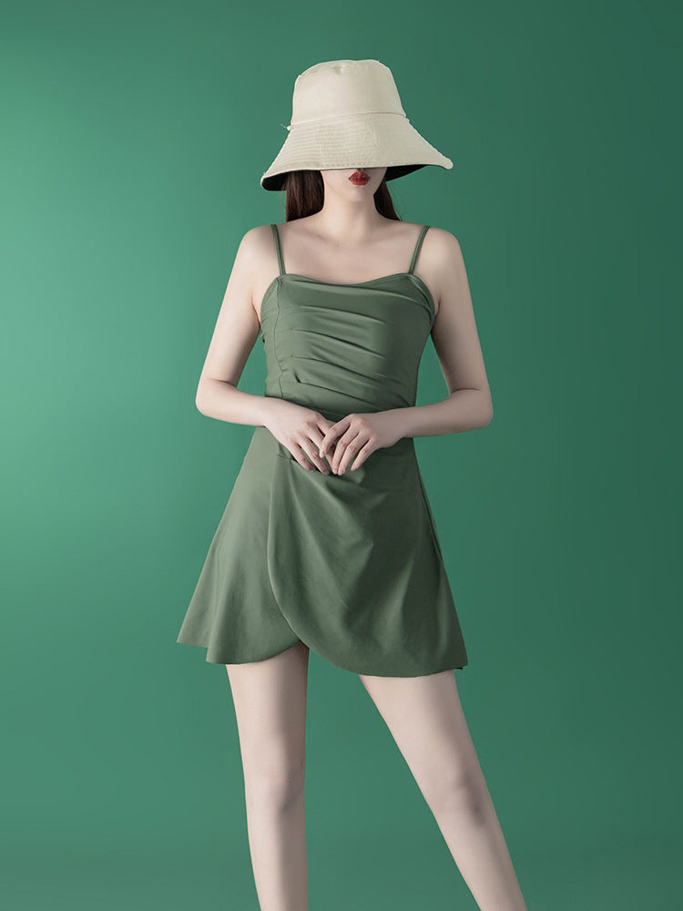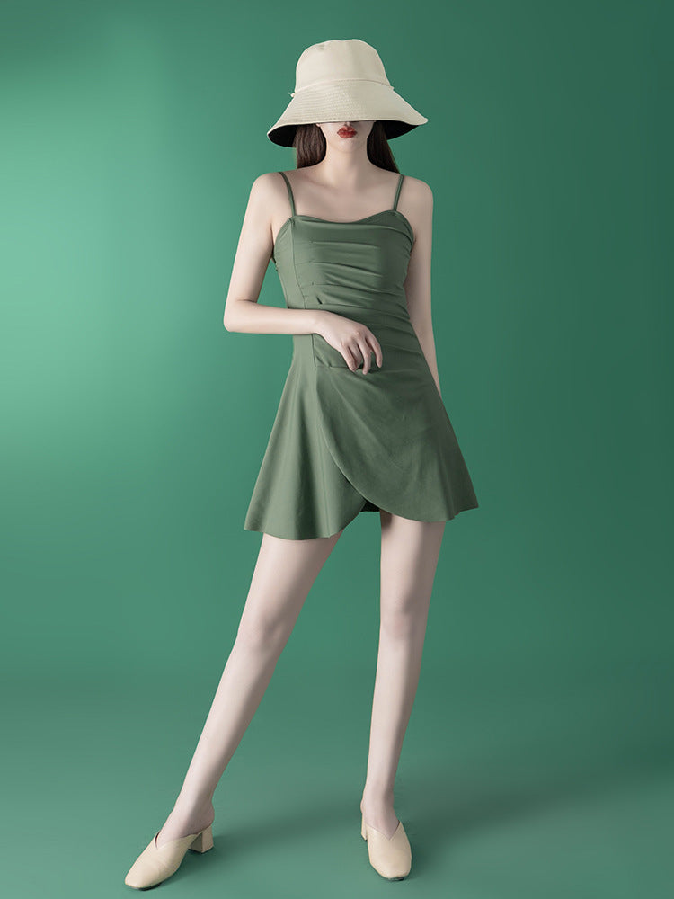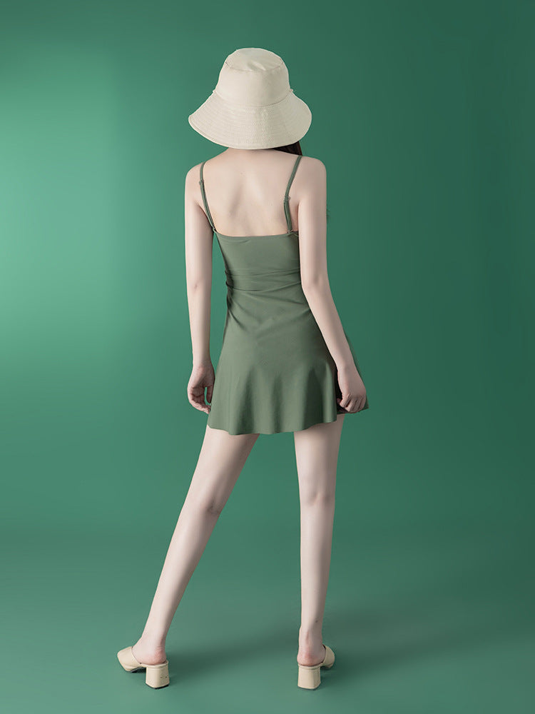 シンプルで上品なデザインが特徴です。お腹周りに美しいギャザーが施されており、体のラインをさりげなくカバーしてくれます。ショルダーストラップは細めで、フェミニンな印象を与えつつ、快適なフィット感を提供します。ビーチリゾートやナイトプールなど、特別なシーンでも活躍すること間違いなしです。露出度が控えめなデザインなので、安心してアクティブに動けるのも魅力です。