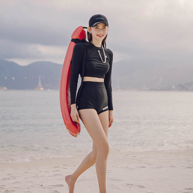 ラッシュガード 水着 ブラックミニマルデザイン セットアップ 下半身が気になる 体形カバー