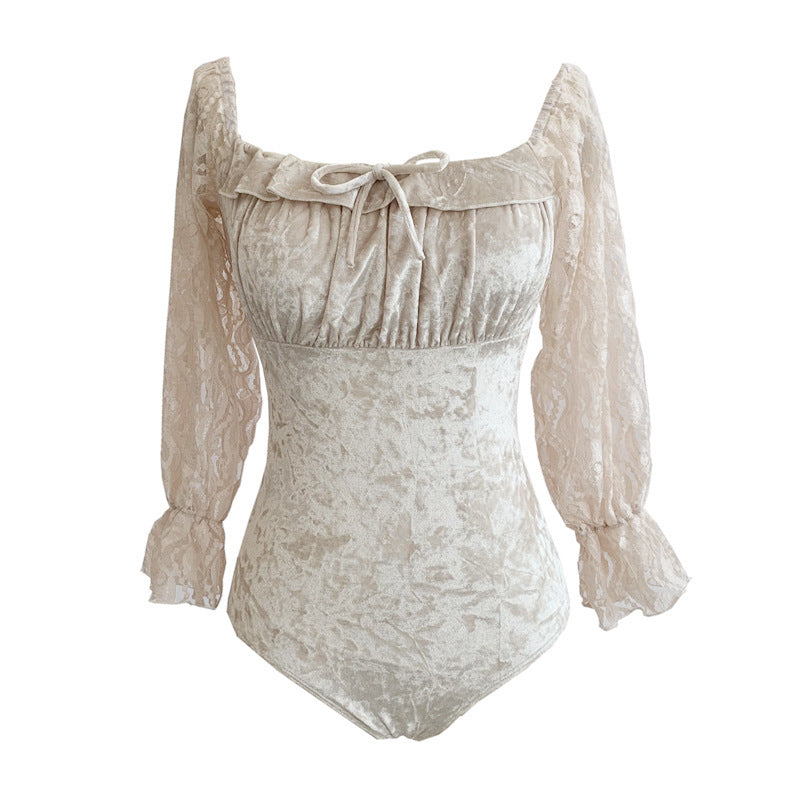ワンピース 水着 エレガントレースアップ スクエアネック フレア 体形カバー