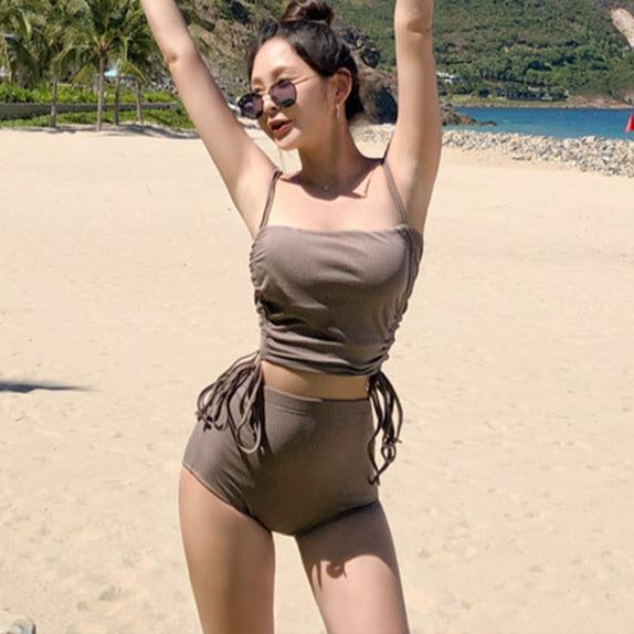 [商品名]:ビキニ 水着 サイドリボン スタイリッシュ ハイウエスト 体形カバー