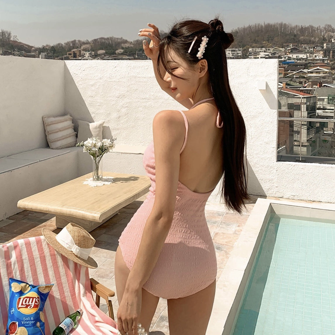 上品なスモックデザインが魅力のワンピース水着です。しっかりとしたシャーリング加工が身体にフィットし、バストラインを美しく演出します。背中部分は大胆にカットされ、女性らしい後ろ姿を引き立てます。肩紐はホルターネック風にもアレンジ可能で、スタイルに合わせた着こなしが楽しめます。シンプルながらも洗練されたデザインは、ビーチリゾートやプールサイドで大活躍。快適な着心地とおしゃれさを兼ね備えた一着です。