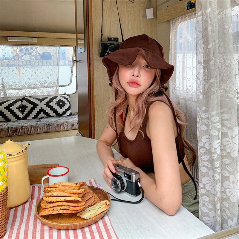 タンキニタイプの水着2点セットです。ハイウエストデザインのショーツが気になるお腹周りをしっかりカバーし、美しいラインを演出します。付属のバケットハットは紫外線対策としても活躍し、おしゃれなアクセントに。プールやビーチはもちろん、サウナやスパなどリラクゼーションシーンにもぴったり。シンプルながらも洗練されたデザインで幅広いシーンで活躍するアイテムです。