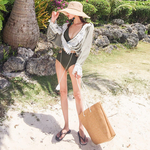 [商品名]:ビキニ 水着 カットアウト スタイリッシュ ストラップ ハイウエスト 体形カバー