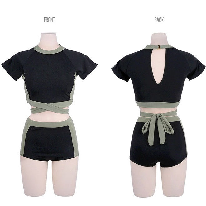 トレンド感溢れるクロップド丈のラッシュガードとハイウエストパンツのセットです。体にフィットしつつも程よいゆとりがあり、快適さを保ちながらスタイルアップを叶えます。ウエストのクロスデザインがアクセントとなり、シンプルながらも洗練された印象を与えます。UV対策をしっかりしつつ、プールやビーチリゾートはもちろん、スポーツやヨガなどのアクティブシーンにも最適です。デザイン性と機能性を兼ね備えた一枚で、どんな場面でもおしゃれを楽しめます。