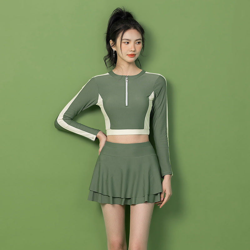 [商品名]:ラッシュガード 水着 フレアスカート ジッパーデザイン 下半身が気になる 体形カバー