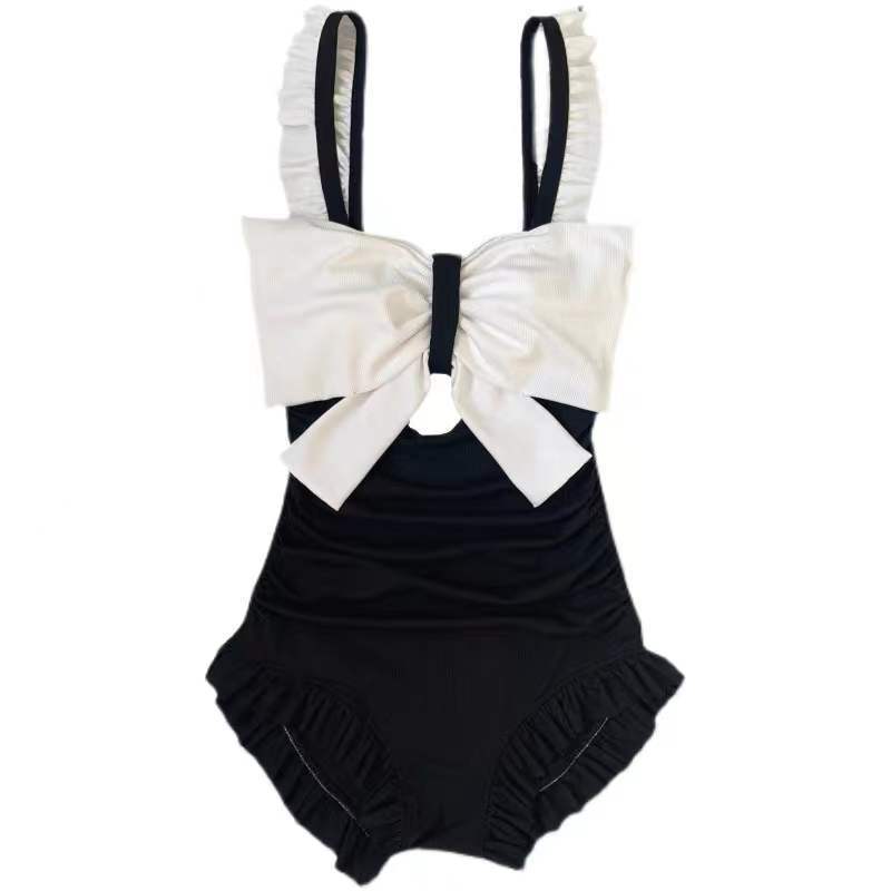 リボンとフリルがポイントのワンピース水着です。各カラーのコントラストが上品で、大人っぽさと可愛らしさを両立。背中部分は大胆なバックオープンデザインで、さりげなく肌見せを楽しめます。胸元のリボンが視線を集め、ウエストの切り替えとフリルが体型をさりげなくカバー。ビーチリゾートやプールでの使用にぴったりで、写真映えもばっちりです。おしゃれを楽しみながら気になる部分を自然にカバーできる優秀な一着です。