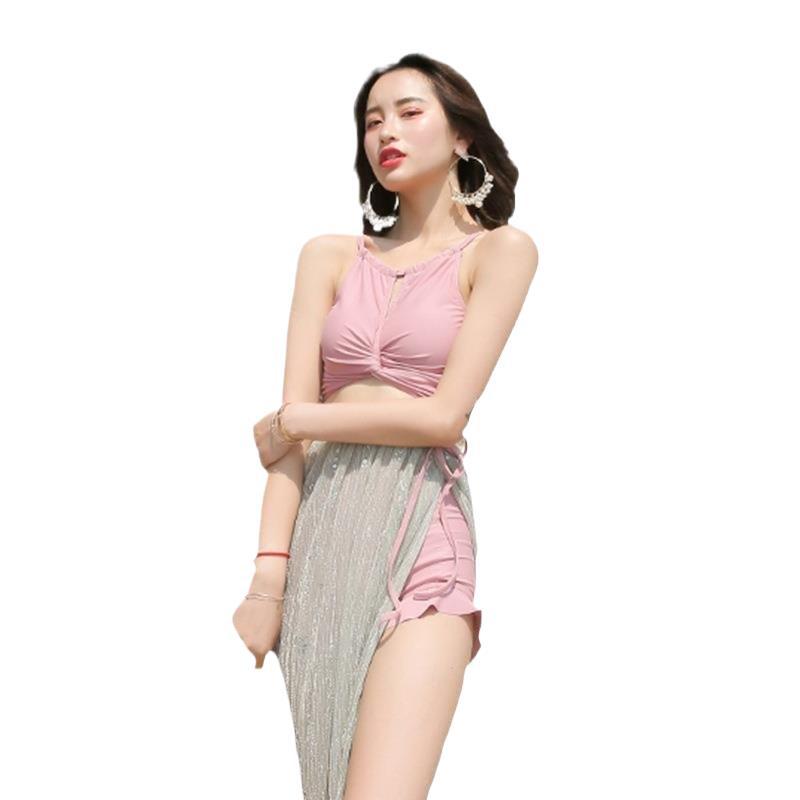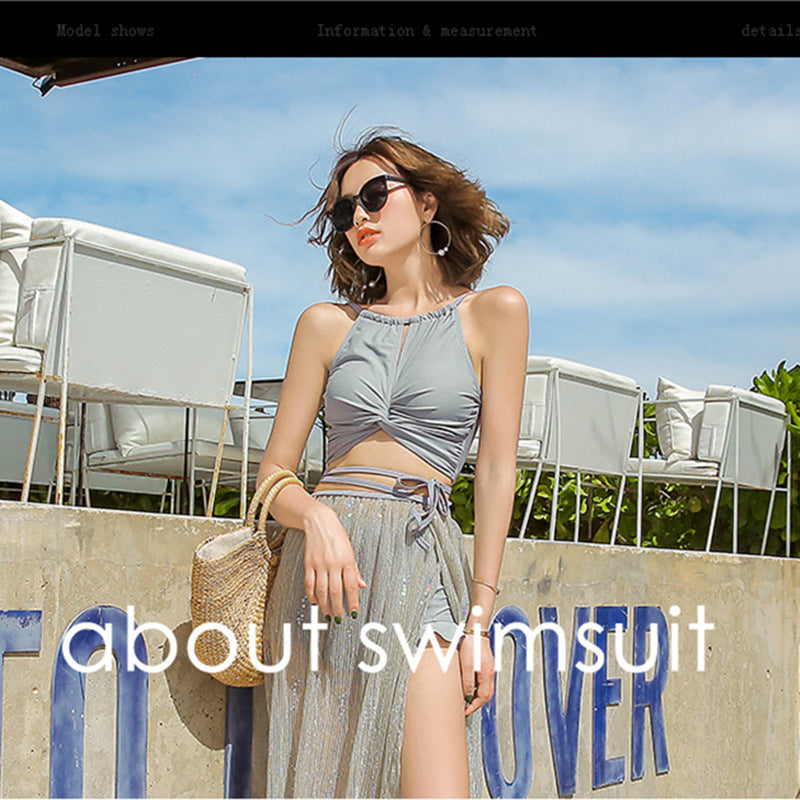 女性らしさを引き立てるハイウエストビキニとシースルーパレオがセットになった水着です。トップスはツイストデザインでバストラインを美しく演出し、バックリボンで後ろ姿にもポイントをプラス。ハイウエストのショーツはお腹周りをしっかりカバーし、フリルデザインで可愛らしさをプラスしています。シースルーパレオは脚のラインをさりげなく見せながらも、エレガントな雰囲気を演出。ビーチやプールサイド、リゾートなどの幅広いシーンにぴったりのアイテムです。