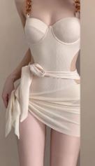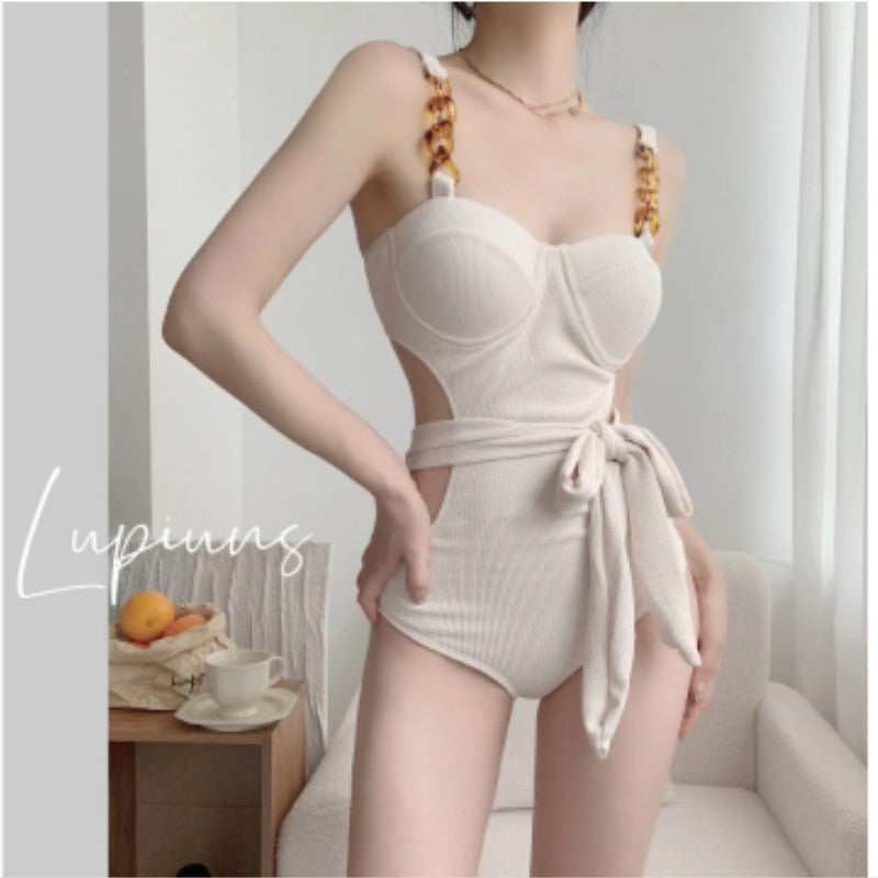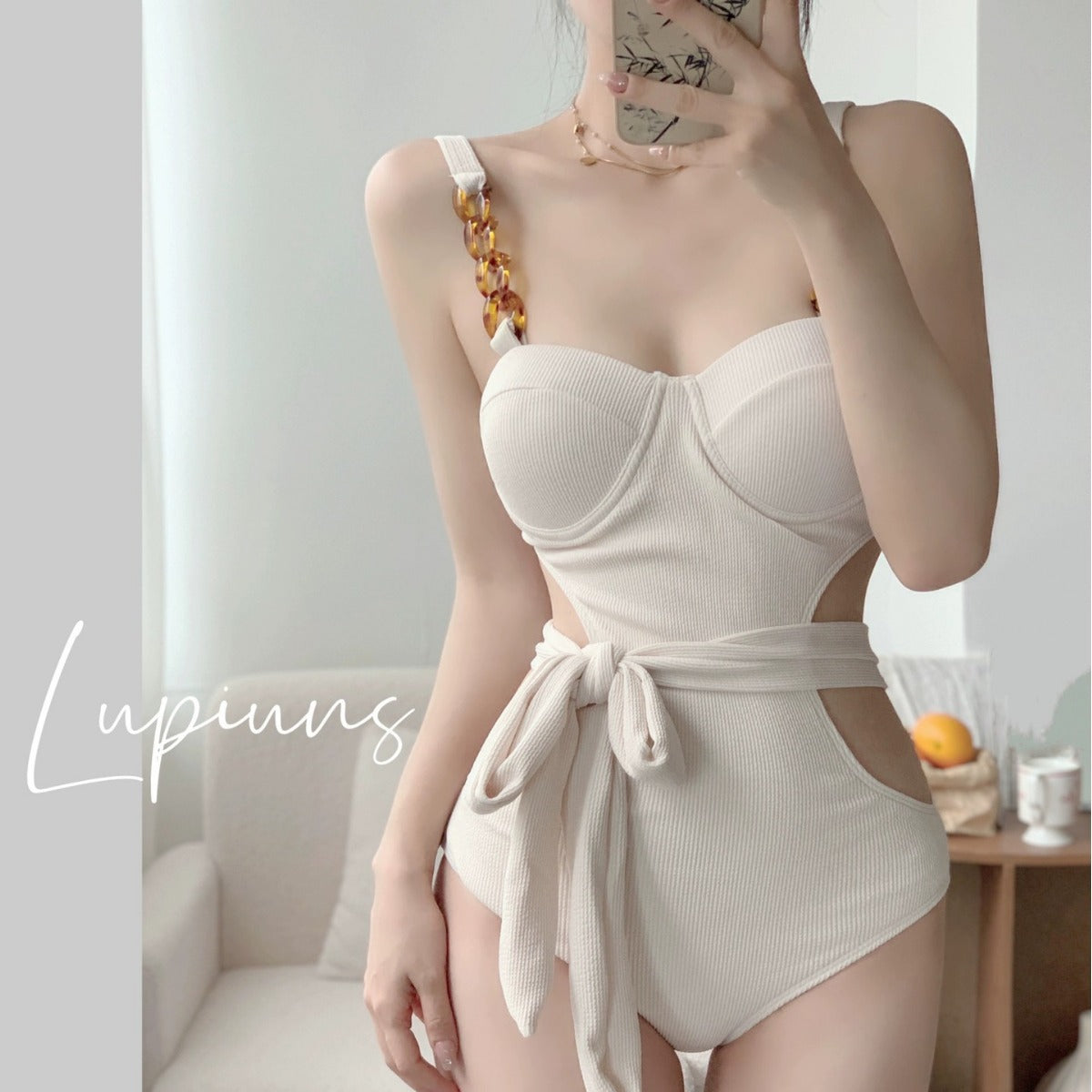 [商品名]:ビキニ 水着 チェーンストラップ カットアウトデザイン モノキニ 体形カバー