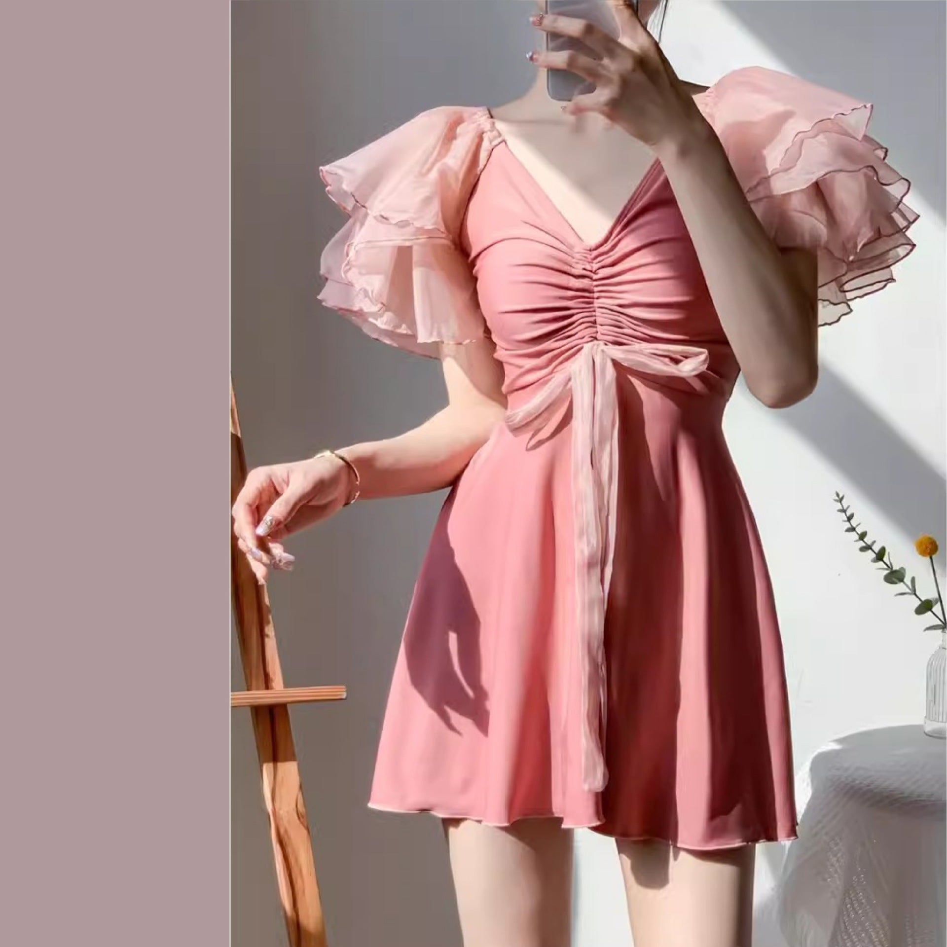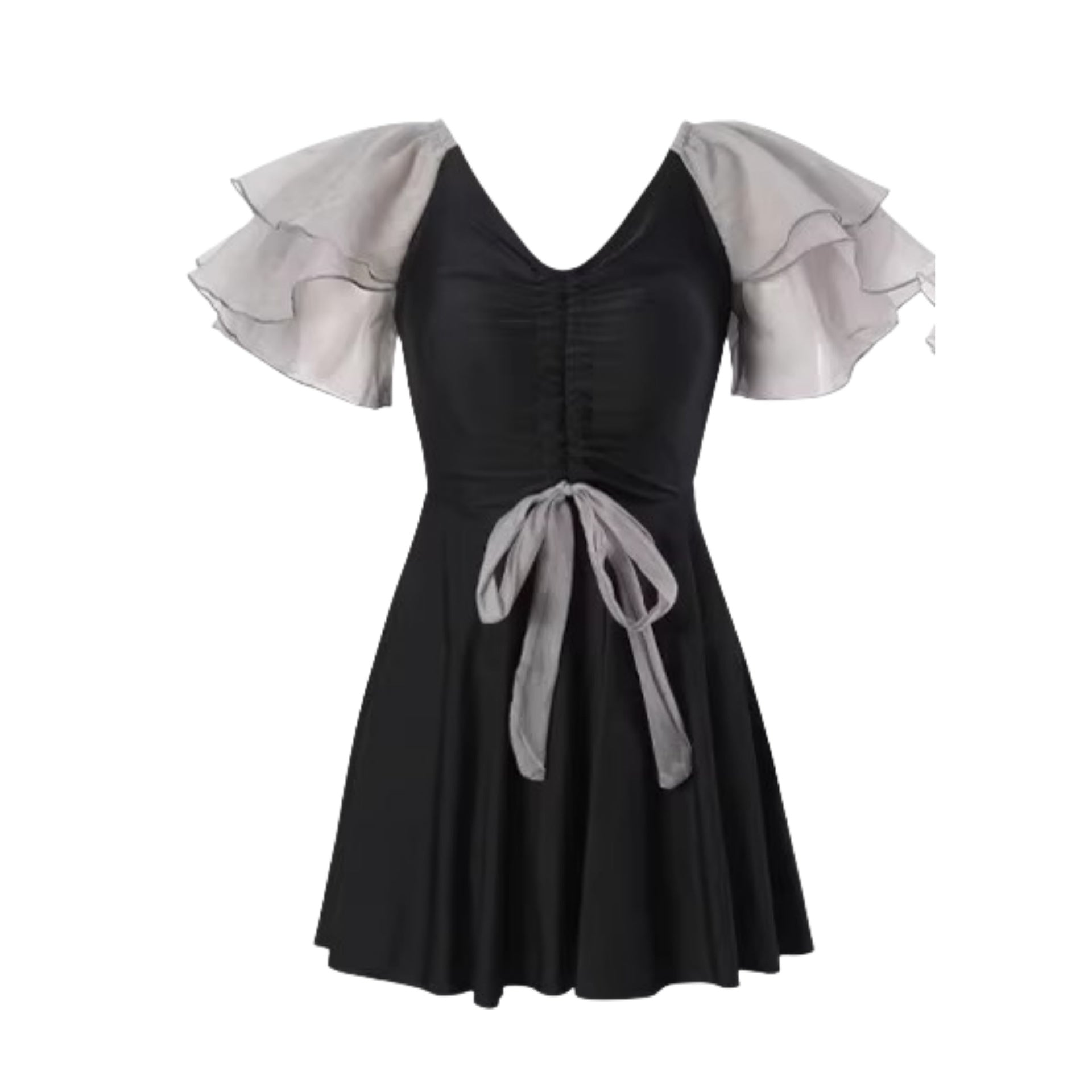 [商品名]:ワンピース 水着 シフォンフレアスリーブ フェミニン フレア 体形カバー