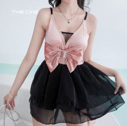 華やかで女性らしいデザインが魅力のワンピース水着です。大きなリボンデザインがバストラインを華やかに演出し、胸元のカットアウトがアクセントになっています。スカート部分はチュール素材のレイヤード仕様になっており、歩くたびにふんわりと揺れるシルエットがフェミニンな印象をプラス。バックスタイルはシンプルながらも軽やかで、後ろ姿もおしゃれに決まります。ナイトプールやリゾート、SNS映えを狙いたいシーンにぴったりの一着です。