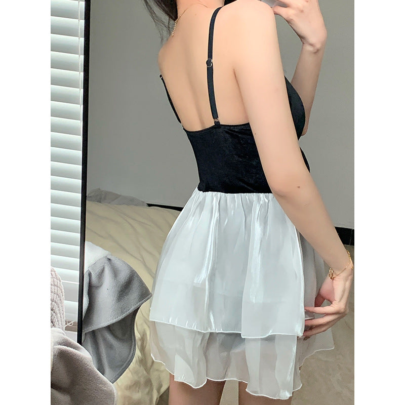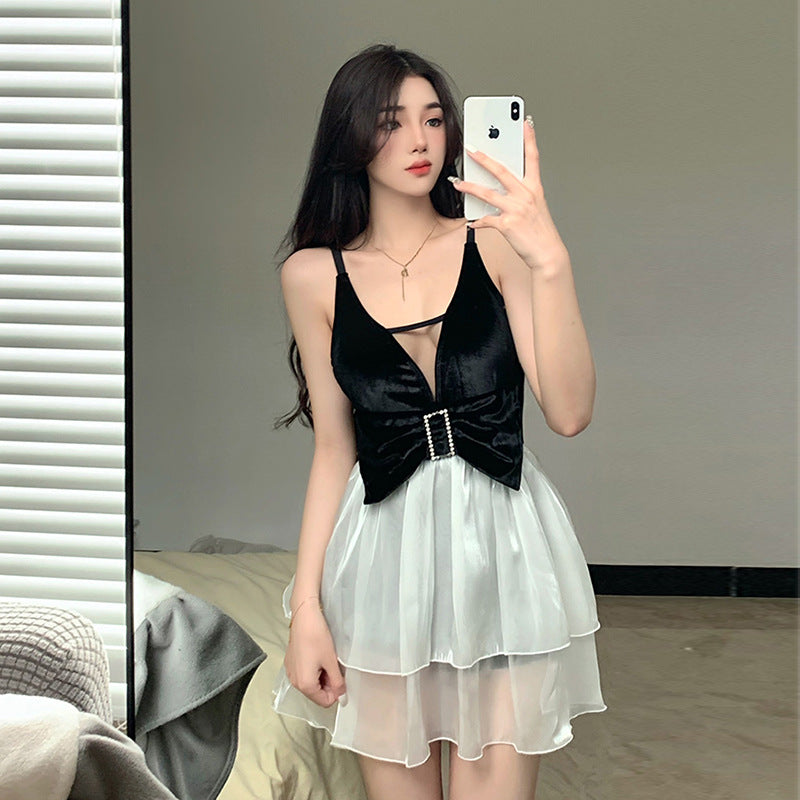 [商品名]:ワンピース 水着 SNS映え チュール素材 カットアウト レイヤード フレア 体形カバー